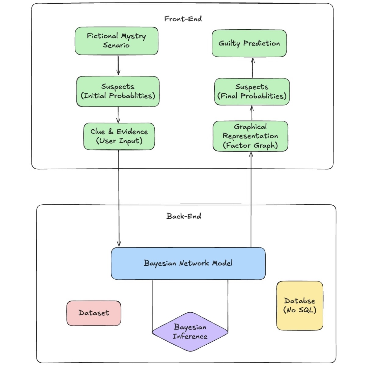 An interactive application that applies Bayesian inference to fictional mystery scenarios. Users input clues and evidence, and the system calculates the probabilities of different suspects, offering a data-driven approach to deduction.